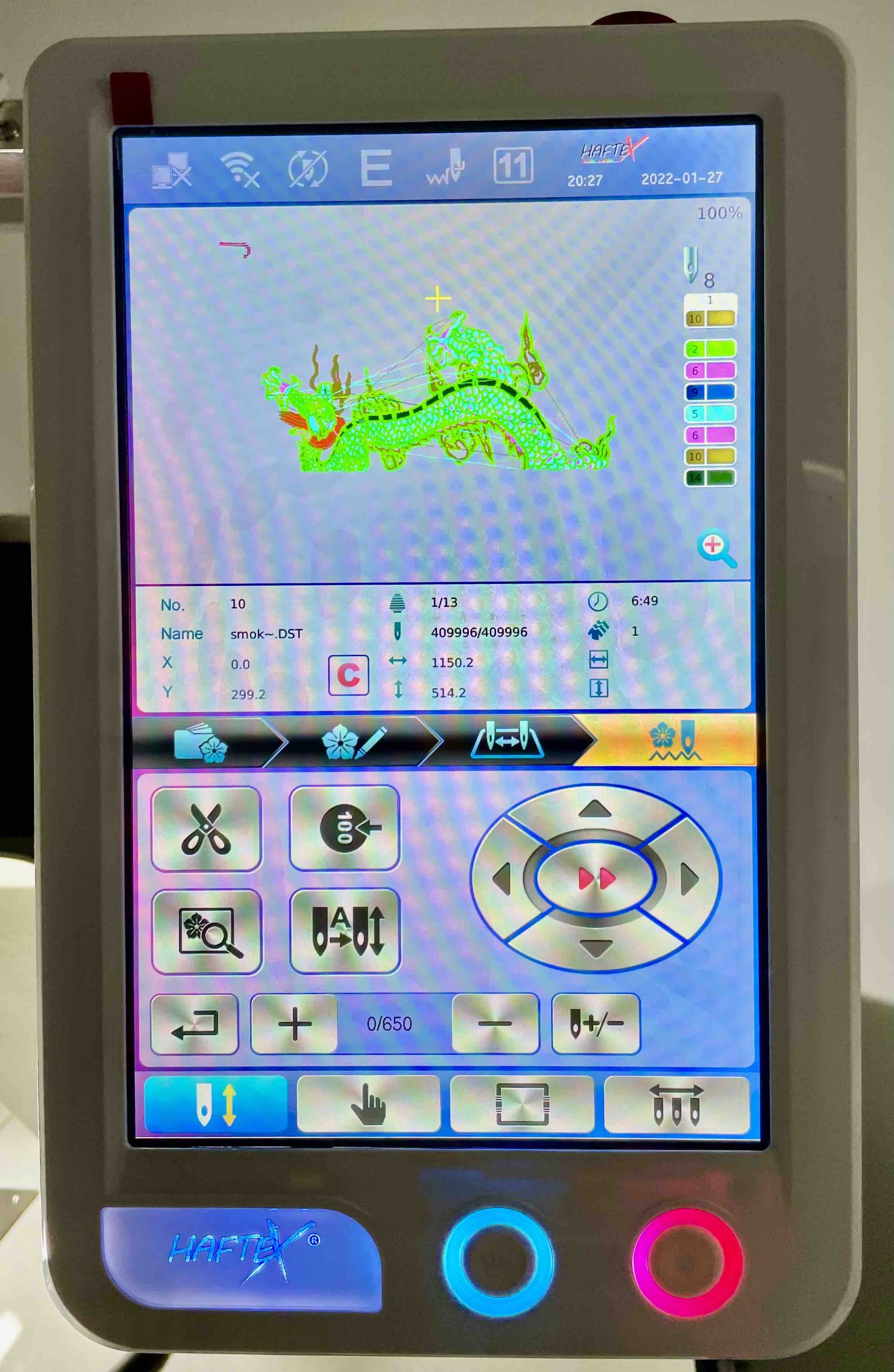 Panel sterujący to 10-calowy ekran dotykowy, natomiast jego obsługa jest tak prosta, że nasi klienci sami dziwią się jak szybko ją opanowują. Obsługa ekranu jest bardzo intuicyjna więc w łatwy sposób wydasz polecenia hafciarce.
